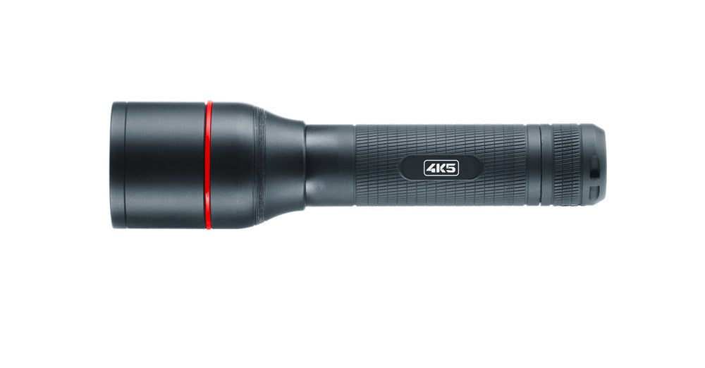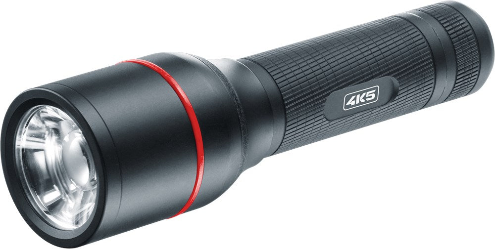 Set bevat: Krachtige LED-werklamp met 1000 lumen, vier lichtstanden en instelbare focus, inclusief riemholster en polsriempje.