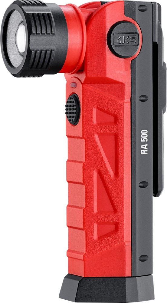 Set bevat: RA500 werklamp met 500 lumen lichtopbrengst, 90° draaibare lampkop, vier lichtstanden, magnetische bevestiging, zakclip en USB-C oplaadkabel. Ideaal voor bouwplaatsen, werkplaatsen en buitengebruik.