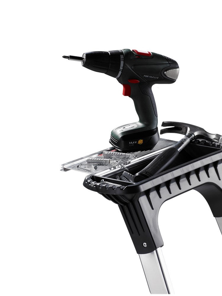 Met de HandGrip klap je de huishoudtrap eenvoudig in. En dankzij het lichtgewicht aluminium is de Double Decker makkelijk te verplaatsen.