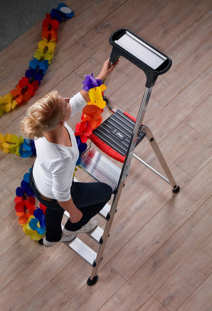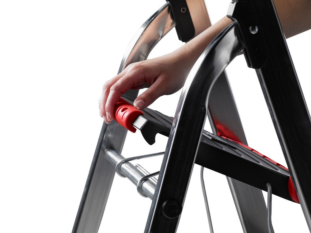 Met de HandGrip klap je de huishoudtrap eenvoudig in. En dankzij het lichtgewicht aluminium is de Double Decker makkelijk te verplaatsen.