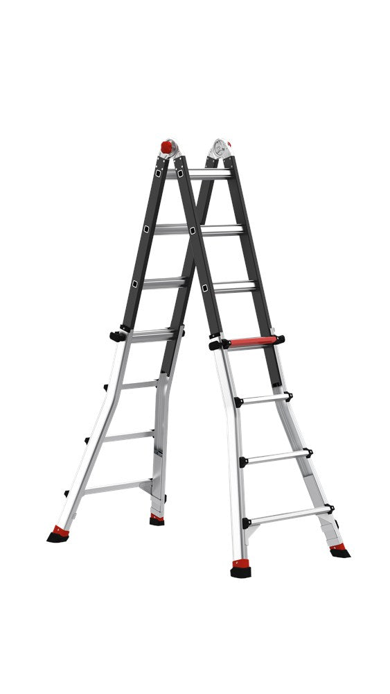 De Varitrex Tele PRO+ Flex zet je binnen een handomdraai in A-stand of ladderstand. Dankzij de ergonomische vergrendelingsknop gemakkelijker dan ooit. Plaats de vouwladder in de gewenste stand en bereik daarmee de hoogte die jouw klus nodig heeft.