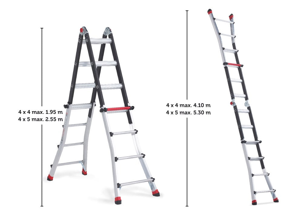 De Varitrex Teleprof zet je eenvoudig in een ander stand: A-stand of ladderstand. Ook ideaal op ongelijke ondergrond door het telescopisch mechanisme.