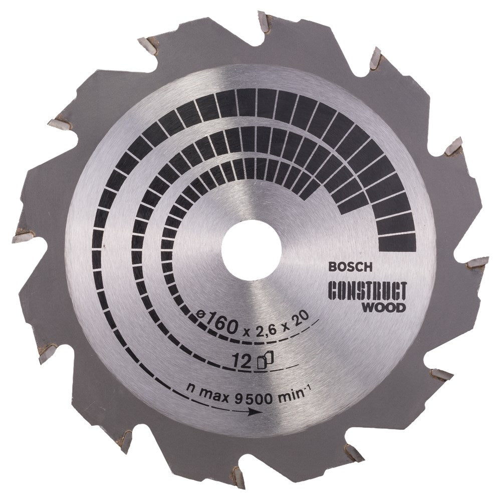 Bosch Cirkelzaagblad Construct Hout 160 X 20/16 X 2,6mm 12T – 2608640630