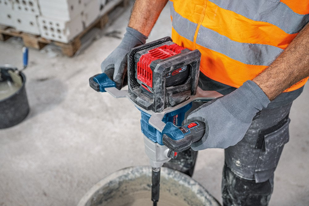Set bevat: Krachtige 18V accu-mengmachine met borstelloze motor en twee snelheidsstanden, inclusief softstart-functie en KickBack Control voor veilig en spettervrij mengen; ideaal voor metselwerk, renovaties en landschapsarchitectuu...