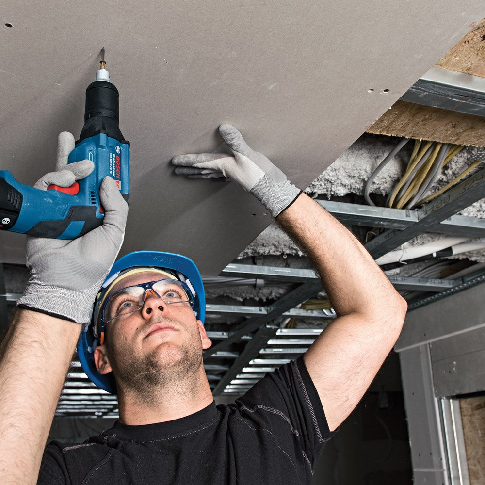 GTB 12V-11 PROFESSIONAL Hoogtepunten van het productDe GTB 12V-11 Professional is een compacte accudroogbouwschroevendraaier voor incidentele droogbouwtoepassingen in de 12V-klasse. Hij beschikt over een compact en licht ontwerp van 0,9 kg met 2,5 Ah en een ergonomische greepomtrek voor comfortabel hanteren, zelfs op krappe werkplekken. Hij heeft ook een krachtige en compacte aandrijflijn van 12 V waarmee tot wel 1200 schroeven per (2,5 Ah) acculading kunnen worden bevestigd. Voor een lange levensduur van de machine beschikt de droogbouwschroevendraaier over de borstelloze motortechnologie van Bosch met Electronic Motor Protection en een motorrem.