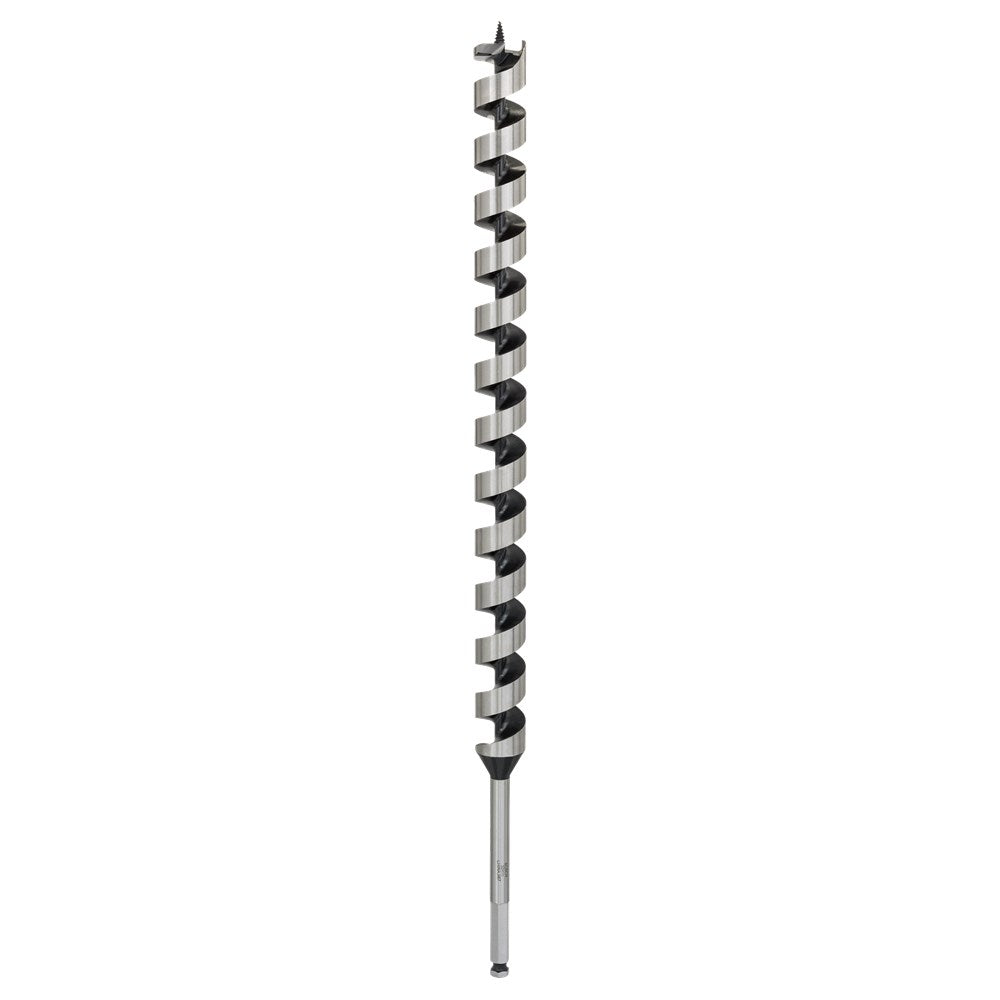 De slangenboor is ideaal voor snel en nauwkeurig boren bij het maken van doorgangsgaten, het voorboren voor spantspijkers en het boren van diepe deuvelgaten in hout. De zware, zelfschroevende punt trekt de boor helemaal door het materiaal, waardoor er snel, makkelijk en nauwkeurig kan worden geboord. Rechte gaten en een snelle afvoer van spaanders in combinatie met een verhoogde snelheid worden mogelijk gemaakt door de geoptimaliseerde spiraal (met weinig wrijving) met een solide centrum. De geoptimaliseerde voorsnijder en de precisie-geslepen hoofdsnijkant staan garant voor nauwkeurige gaten. Ideaal voor gebruik in de bouwsector, voor timmermannen en dakdekkers, en geschikt voor zacht- en hardhout