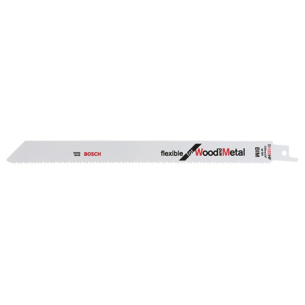 Bosch S 1122 HF 'Flexible for Wood and Metal' reciprozaagblad, 225mm lengte, geschikt voor het zagen van hout en metaal, ideaal voor palletreparatie en vergelijkbare toepassingen.