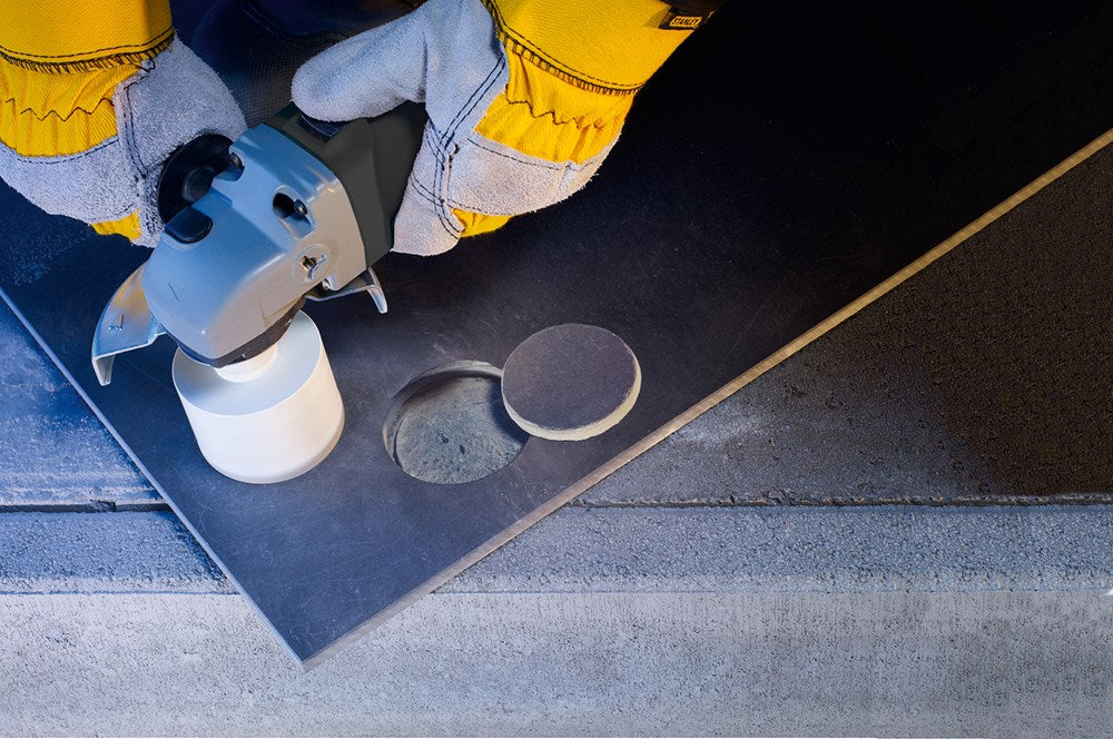 Aluminium koffer met diamantboren voor droog gebruik op haakse slijpers, geschikt voor boren in harde tegels en natuursteen.