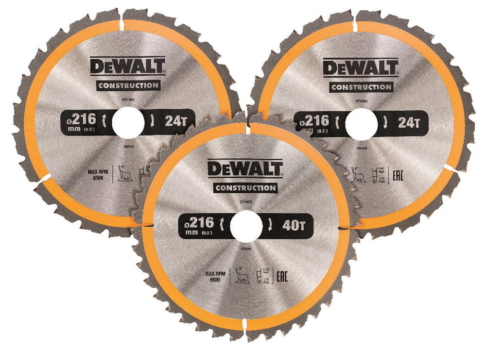 DeWALT Construction Cirkelzaagbladenset 216mm 3-Delig 2X 24T 1X 40T – DT1962-QZ