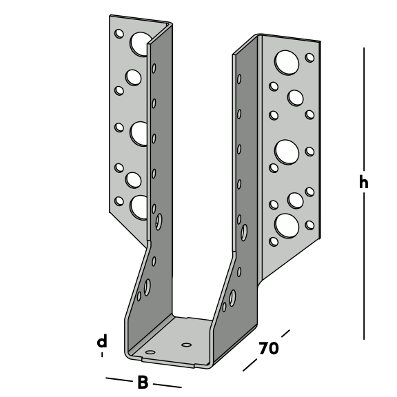 Set bevat: 1x Zwaar verzinkte GB raveeldrager 380/46×167 mm voor het dragen en verbinden van balken in constructieve houtverbindingen.