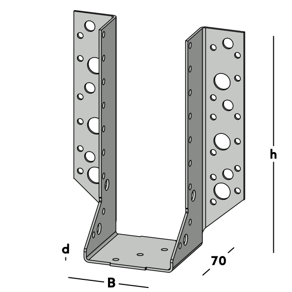 Set bevat: 1x zwaar verzinkte GB raveeldrager 440/71×184 mm voor het dragen en verbinden van balken in constructieve houtverbindingen.