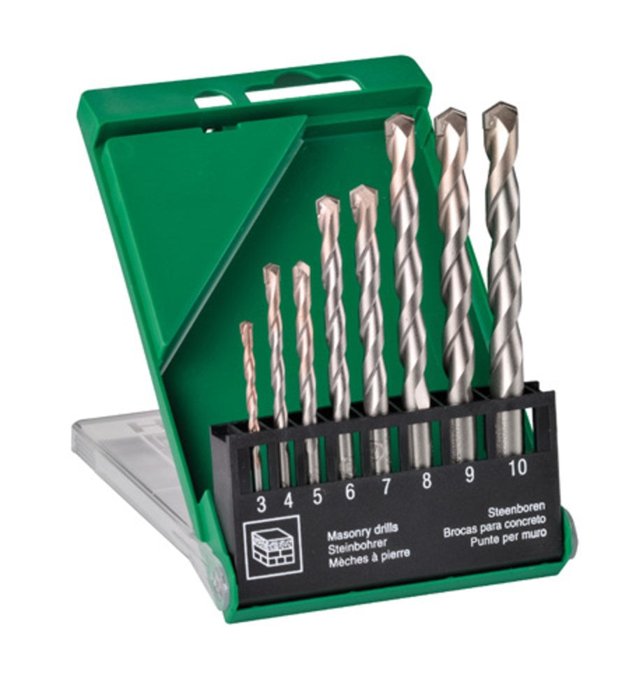 Set bevat: 8-delige borenset met diameters van 3 mm tot 10 mm, geschikt voor het boren in beton, baksteen en natuursteen. Ideaal voor diverse bouw- en renovatietoepassingen.