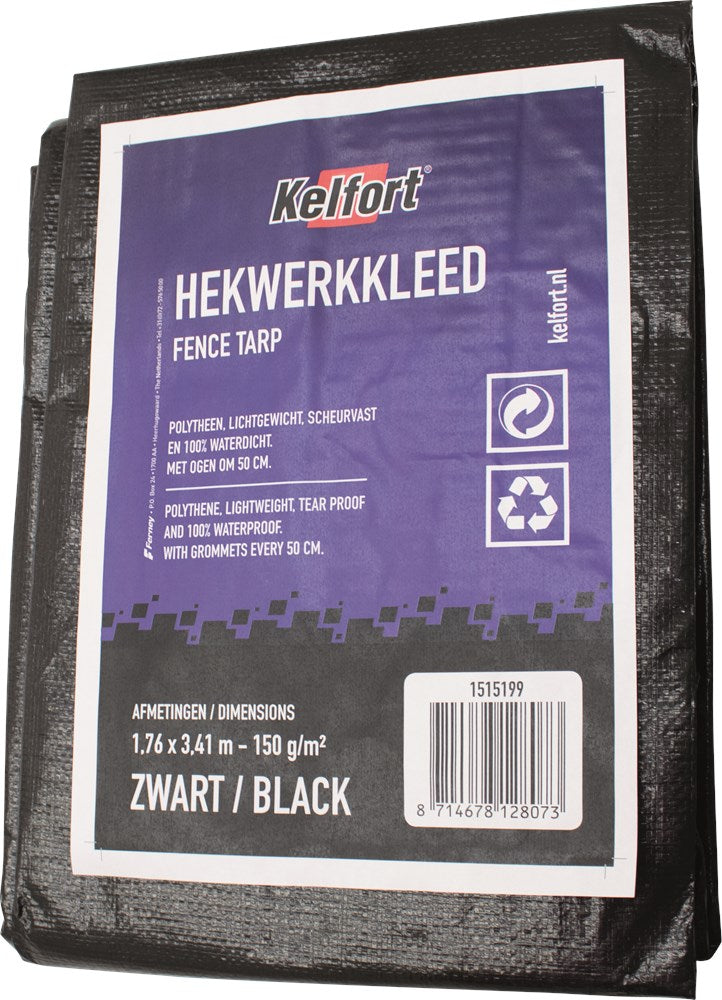 Kelfort Bouwhekzeil Zwart 1.76*3.41M - 150G/M2 – 1515199