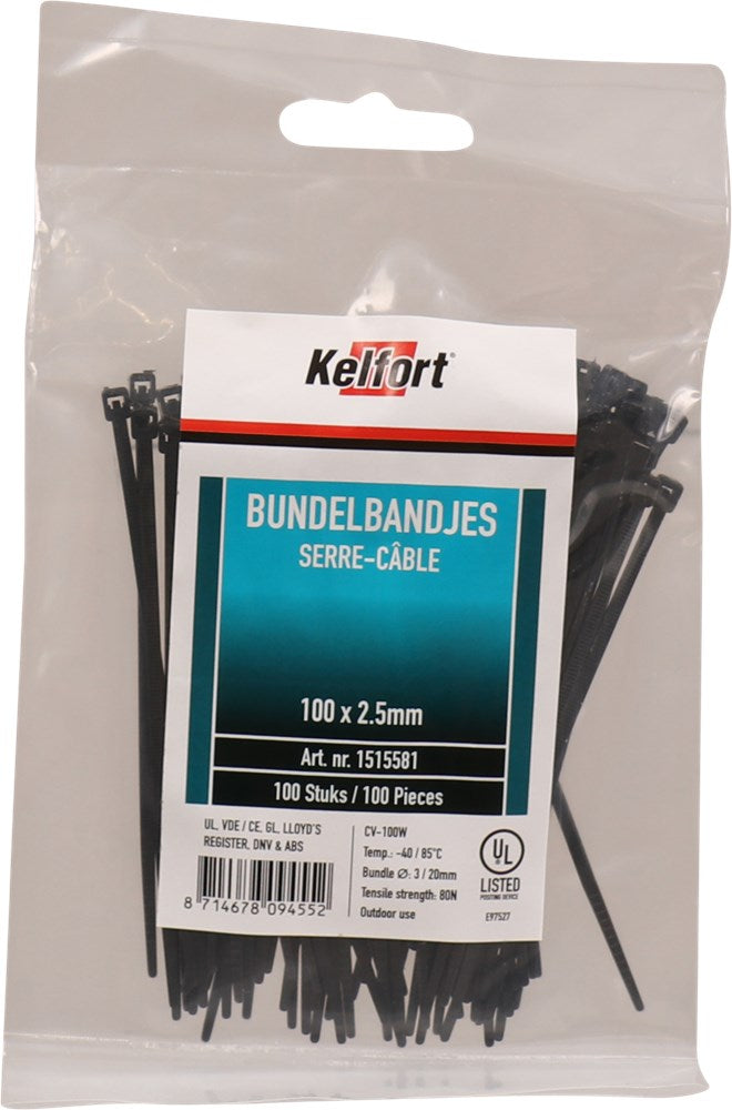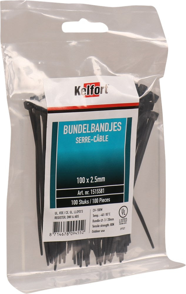 Kelfort Bundelbandjes Nylon 100X2,5mm Zwart – 1515581