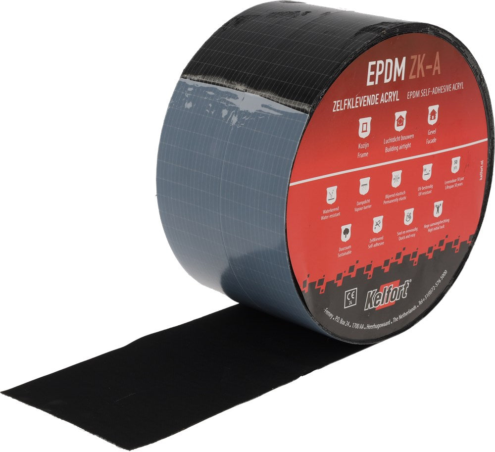 Kelfort zelfklevende acryl EPDM (ZK-A)strook bied je de oplossing om een waterkerende en luchtdichte afdichting te realiseren zonder het gebruik van kit.