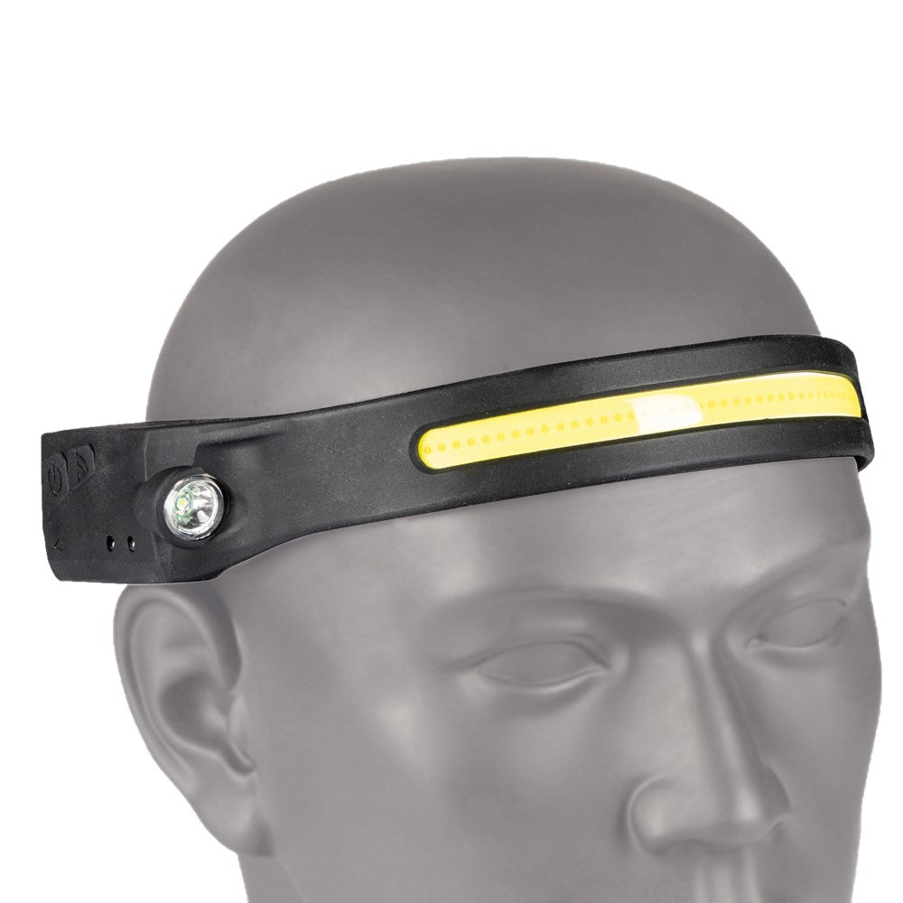 Set bevat: Wavesensor-gestuurde hoofdlamp met flexibele COB voor brede stralingshoek en extra zijlichtbron; ideaal voor handsfree binnen- en buitenwerkzaamheden; inclusief USB-C-oplaadkabel en verstelbare hoofdband.