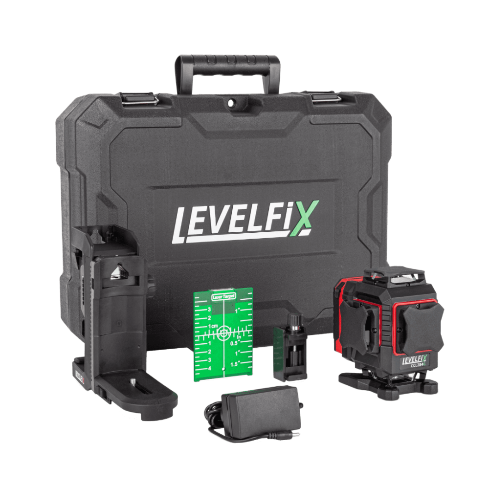 4D multilijnlaser 4×360° groen, statief 1,5m, Li-ion accu, lader, WB-40 houder, doelplaat en koffer; voor vloer-, wand- en plafonduitlijning.