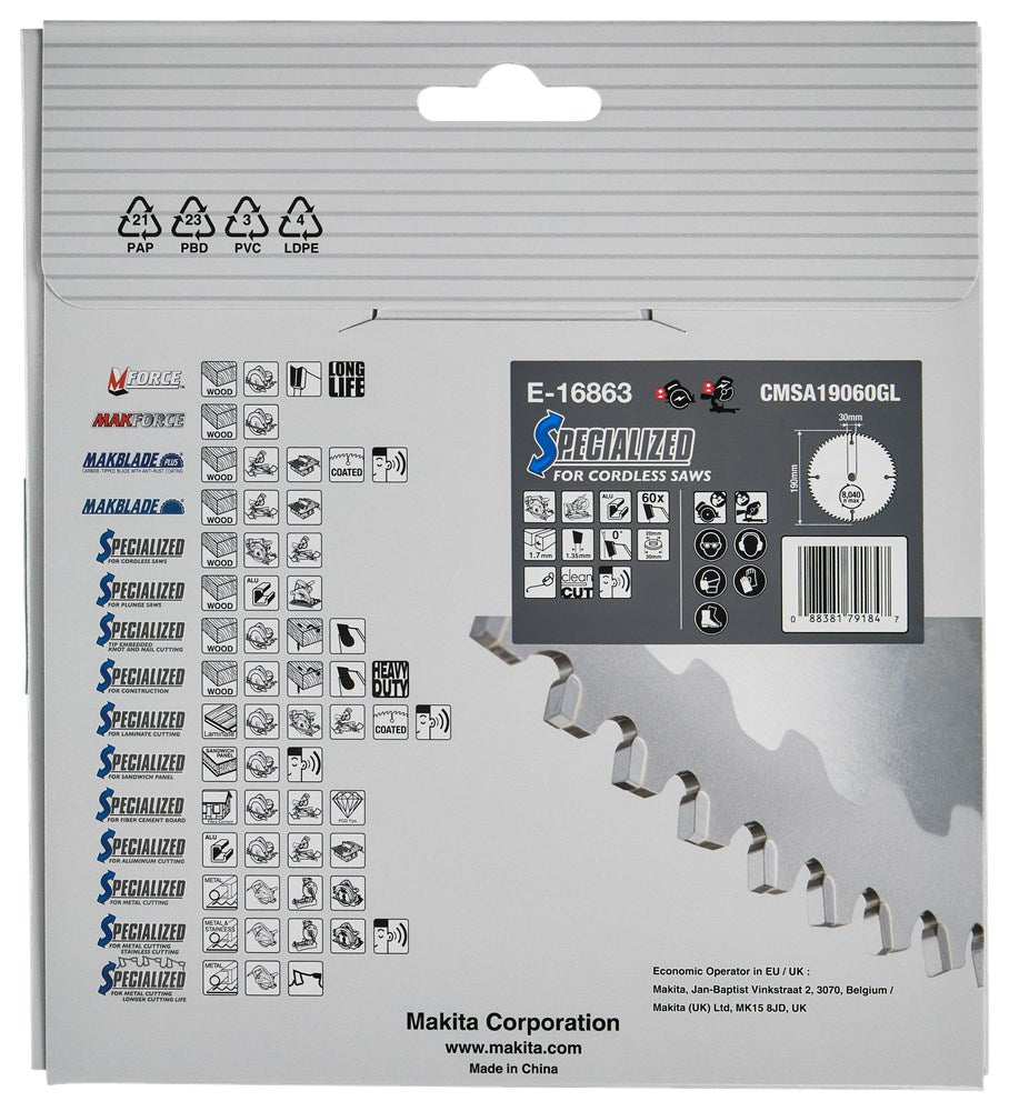 Makita Afkort- en Cirkelzaagblad Aluminium HM Zaagblad 190X30mm 60T 0G Alu – E-16863
