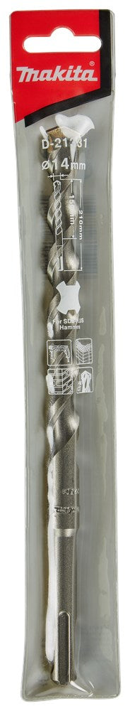 Makita kent een uitgebreide range aan betonboren. Voor elke klus en portemonnee is een betonboor beschikbaar: SP4S: Stofvrij Premium 4-snijder: Hoogste kwaliteit 4-snijder voor stofvrij werken. TNO-certificering met 8-uurs label in combinatie met een B-label stofzuiger. Voor droog metselwerk, beton, gewapend beton en (natuur)steen. P4S: Premium 4-snijder: Hoogste kwaliteit 4-snijder met lange levensduur. Door zijn dynamische boorpunt met unieke snijgeometrie en geoptimaliseerde spiraalvorm mag deze boor zich onder de beste in zijn soort scharen. Geschikt voor (gewapend) beton en (natuur)steen. B4S: Basis 4-snijder is een uitstekende boor die uitblinkt in zijn prijs-kwaliteitsverhouding. P2S: Premium 2-snijder: Hoge kwaliteit 2-snijder met lange levensduur. De dynamisch gevormde boorpunt garandeert een hoge boorsnelheid, de variabele boorspiraal zorgt voor een optimale afvoer van het boorgruis. B2S: Basis 2-snijder is een uitstekende boor die uitblinkt in zijn prijs-kwaliteitsverhouding. Makita betonboor met SDS-PLUS aansluiting, afmeting 14x210mm.