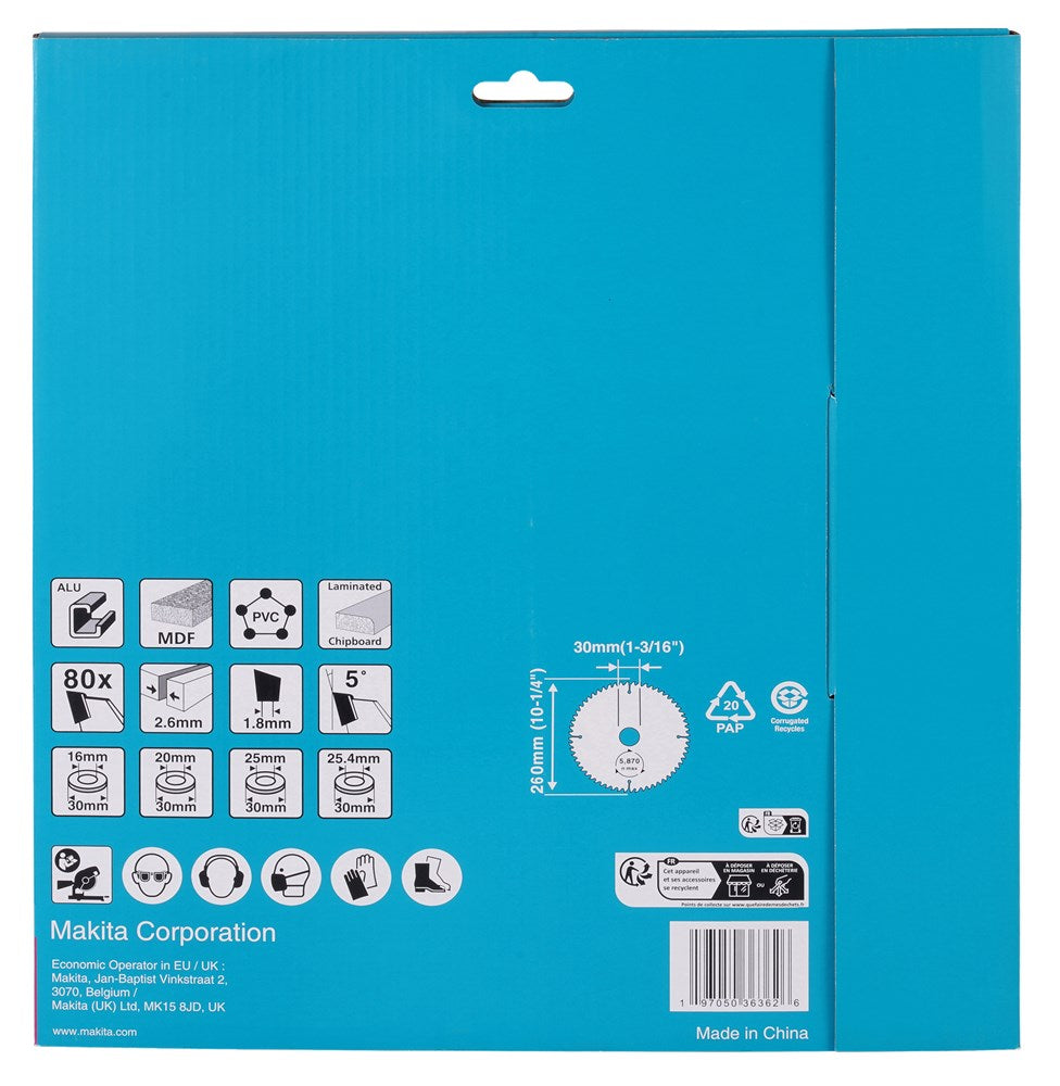 Makita CIRKELZAAGBLAD 260X30X2,6 80T 5G D-81751