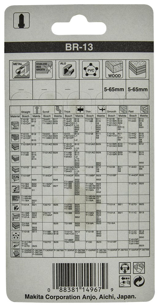 De keuze van een decoupeerzaagblad is afhankelijk van het te zagen materiaal, de dikte van het materiaal en of er rechte lijnen of bochten gezaagd worden. Deze zaagbladen zijn geschikt voor machines met een enkelnokkenschacht aansluiting. HCS decoupeerzaagblad BR-13, gefreesd en gezet. Voor het snel, recht en splintervrij zagen in: hout, multi- en triplex. (5 stuks)
