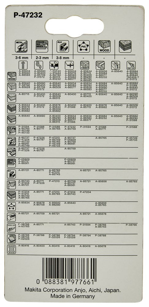 Passend op Makita Model: 4326, 4327, 4329K, 4329X, 4329X5 , 4350CT, 4350FCT, 4350FCTJ, 4350FCTK, 4350T, 4351CT, 4351FCT, 4351FCTJ, 4351FCTK, 4351T, BJV140RFJ, BJV140RFX, BJV140ZJ, BJV140ZX, BJV180RFJ, BJV180RFX, BJV180ZJ, BJV180ZX, DJV140RFJ, DJV140RMJ, DJV140Z, DJV140ZJ, DJV141RFJ, DJV141RMJ, DJV141RTJ, DJV141ZJ, DJV142RFJ, DJV142RMJ, DJV142RTJ, DJV142ZJ, DJV180RFJ, DJV180RMJ, DJV180RTJ, DJV180Z, DJV180ZJ, DJV181RFJ, DJV181RMJ, DJV181RTJ, DJV181Z, DJV181ZJ, DJV182RFJ, DJV182RMJ, DJV182RTJ, DJV182Z, DJV182ZJ, DJV184RAJ, DJV184RTJ, DJV184Z, DK18003J , JR1000FTK, JR102DWE, JR105DSAE, JR105DSME, JR105DSMJ, JR105DZJ, JV001GD201, JV001GZ, JV0600J, JV0600K, JV0600X1, JV100DZ, JV101DSAE, JV101DSAJ, JV101DSME, JV101DZJ, JV102DSAJ, JV102DSMJ, JV102DZJ, JV103DSAJ, JV103DSMJ, JV103DZJ, JV143DWE, JV143DZ, JV183DWE, JV183DZ, M4301