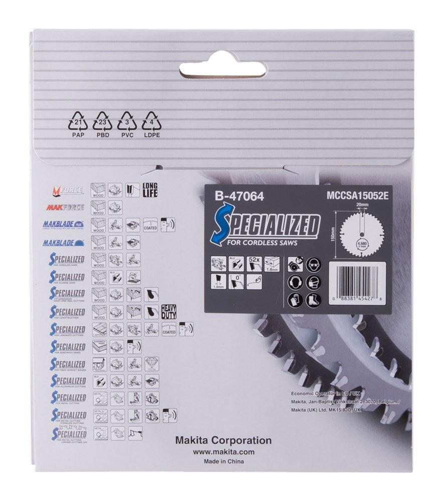 Makita HM Zaagblad 150X20X1,6 52T A Zaagblad ATB 150X20X1,6mm 0G – B-47064