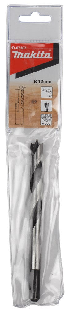 Makita houtboren met boorpunt, zijsnijders en geslepen spiraal. Boorkleur: zwart. Uitermate geschikt voor het boren in zacht- en hardhout, spaanplaat, gefineerde meubelpanelen, triplex en multiplex. Makita houtboor 12x155mm, met boorpunt, zijsnijders en geslepen spiraal. Uitermate geschikt voor het boren in zacht- en hardhout, spaanplaat, triplex en multiplex.