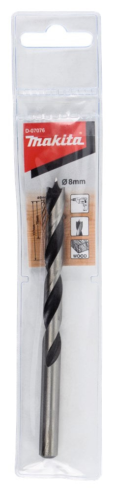 Makita houtboren met boorpunt, zijsnijders en geslepen spiraal. Boorkleur: zwart. Uitermate geschikt voor het boren in zacht- en hardhout, spaanplaat, gefineerde meubelpanelen, triplex en multiplex. Makita houtboor 8x115mm, met boorpunt, zijsnijders en geslepen spiraal. Uitermate geschikt voor het boren in zacht- en hardhout, spaanplaat, triplex en multiplex.