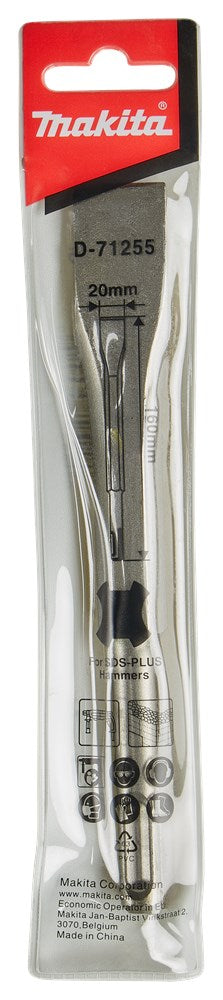 Koudbeitels. Gericht breekwerk voor aanpassingen in metselwerk en beton. Makita koudbeitel met SDS-PLUS aansluiting, afmeting 20x160mm.