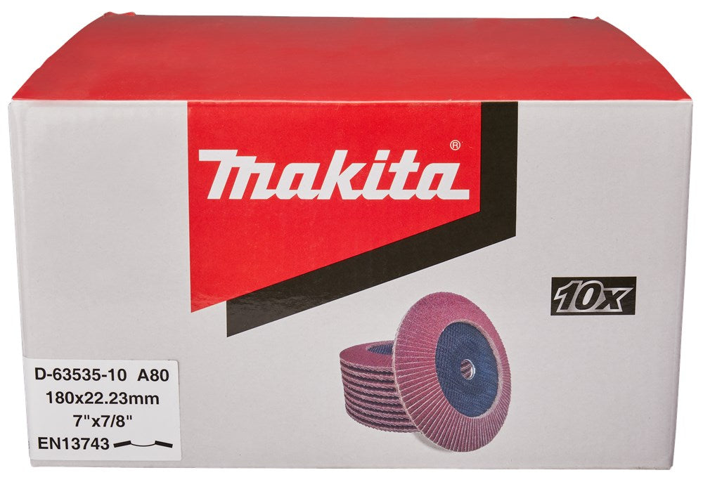 Lamellenschuurschijven zijn voorzien van lamellen bestaande uit een rug van vezelstof en korrels. Deze zijn geplaatst op een schijf met een rug van glasvezels. Doordat de schijf opgebouwd is uit lamellen is deze veerkrachtiger dan een schuurschijf en minder agressief voor het te bewerken materiaal. Bijzonder geschikt voor het schuren van lasnaden. Soorten korrel: Aluminiumoxide [A]: Zeer geschikt voor staal. Geschikt voor aluminium, non-ferro metalen en kunststoffen. Zirkoniumoxide [Z]: Zeer geschikt voor RVS. Geschikt voor staal, aluminium en non-ferro metalen. Keramisch aluminiumoxide [Ce]: Zeer geschikt voor RVS. Geschikt voor staal, aluminium en non-ferro metalen. Siliciumcarbide [S]: Zeer geschikt voor mortel en steen. Vom van de schijf: Vlakke schijven gebruik je voor het vlakschuren van oppervlakken. Plaatst deze onder een hoek van 0-15° op het materiaal voor een optimaal gebruik. Schuine schijven gebruik je voor het schuren van lasnaden, slijpen van vellingkanten en ontbramen. Plaats deze onder een hoek van 10-25° op het materiaal voor een optimaal gebruik. Korrels: 36/40: Lasnaadbewerking en vellingkanten. 60: Lasnaadbewerking, vellingkanten, ontbramen en vlakschuren. 80: Ontbramen en vlakschuren. 120: Vlakschuren. Voordelige Makita aluminiumoxide lamellenschuurschijf schuin met glasvezel versterkte rug. Diameter 180mm met korrel 80. Zeer geschikt voor: metaal. Geschikt voor: kunststof, non-ferro metalen en hout. Verpakkingseenheid: 10 stuks.