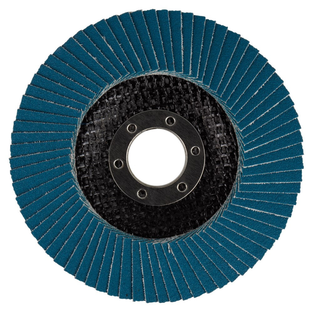 Lamellenschuurschijven zijn voorzien van lamellen bestaande uit een rug van vezelstof en korrels. Deze zijn geplaatst op een schijf met een rug van glasvezels. Doordat de schijf opgebouwd is uit lamellen is deze veerkrachtiger dan een schuurschijf en minder agressief voor het te bewerken materiaal. Bijzonder geschikt voor het schuren van lasnaden. Soorten korrel: Aluminiumoxide [A]: Zeer geschikt voor staal. Geschikt voor aluminium, non-ferro metalen en kunststoffen. Zirkoniumoxide [Z]: Zeer geschikt voor RVS. Geschikt voor staal, aluminium en non-ferro metalen. Keramisch aluminiumoxide [Ce]: Zeer geschikt voor RVS. Geschikt voor staal, aluminium en non-ferro metalen. Siliciumcarbide [S]: Zeer geschikt voor mortel en steen. Vom van de schijf: Vlakke schijven gebruik je voor het vlakschuren van oppervlakken. Plaatst deze onder een hoek van 0-15° op het materiaal voor een optimaal gebruik. Schuine schijven gebruik je voor het schuren van lasnaden, slijpen van vellingkanten en ontbramen. Plaats deze onder een hoek van 10-25° op het materiaal voor een optimaal gebruik. Korrels: 36/40: Lasnaadbewerking en vellingkanten. 60: Lasnaadbewerking, vellingkanten, ontbramen en vlakschuren. 80: Ontbramen en vlakschuren. 120: Vlakschuren. Makita zirkonium-aluminiumoxide lamellenschuurschijf schuin met glasvezel versterkte rug. Diameter 115mm met korrel 120. Zeer geschikt voor: metaal. Geschikt voor: RVS en non-ferro metalen. Voor intensiever gebruik raden wij lamellenschijf B-22654 aan.
