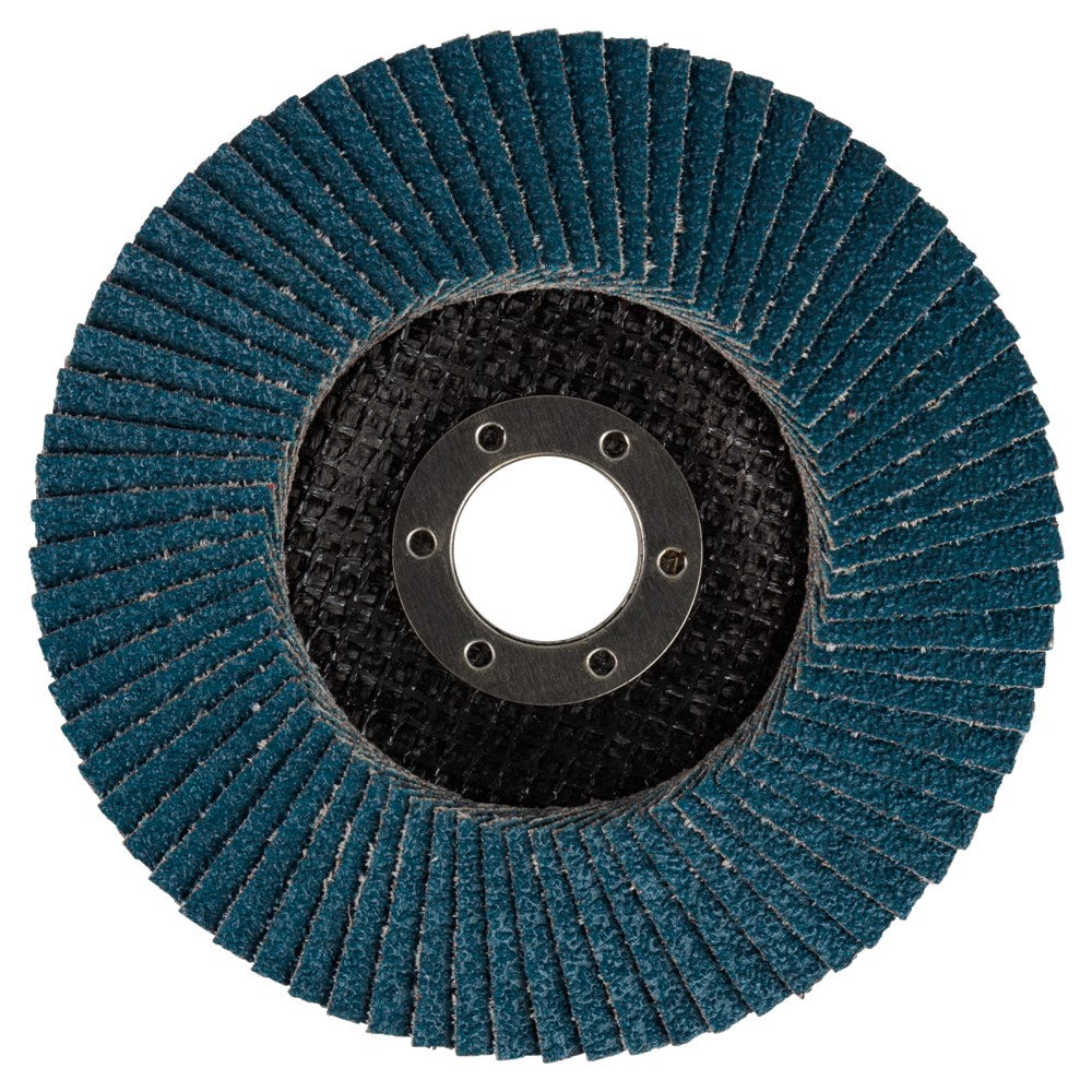Lamellenschuurschijven zijn voorzien van lamellen bestaande uit een rug van vezelstof en korrels. Deze zijn geplaatst op een schijf met een rug van glasvezels. Doordat de schijf opgebouwd is uit lamellen is deze veerkrachtiger dan een schuurschijf en minder agressief voor het te bewerken materiaal. Bijzonder geschikt voor het schuren van lasnaden. Soorten korrel: Aluminiumoxide [A]: Zeer geschikt voor staal. Geschikt voor aluminium, non-ferro metalen en kunststoffen. Zirkoniumoxide [Z]: Zeer geschikt voor RVS. Geschikt voor staal, aluminium en non-ferro metalen. Keramisch aluminiumoxide [Ce]: Zeer geschikt voor RVS. Geschikt voor staal, aluminium en non-ferro metalen. Siliciumcarbide [S]: Zeer geschikt voor mortel en steen. Vom van de schijf: Vlakke schijven gebruik je voor het vlakschuren van oppervlakken. Plaatst deze onder een hoek van 0-15° op het materiaal voor een optimaal gebruik. Schuine schijven gebruik je voor het schuren van lasnaden, slijpen van vellingkanten en ontbramen. Plaats deze onder een hoek van 10-25° op het materiaal voor een optimaal gebruik. Korrels: 36/40: Lasnaadbewerking en vellingkanten. 60: Lasnaadbewerking, vellingkanten, ontbramen en vlakschuren. 80: Ontbramen en vlakschuren. 120: Vlakschuren. Makita zirkonium-aluminiumoxide lamellenschuurschijf schuin met glasvezel versterkte rug. Diameter 125mm met korrel 40. Zeer geschikt voor: metaal. Geschikt voor: RVS en non-ferro metalen. Voor intensiever gebruik raden wij lamellenschijf B-22660 aan.