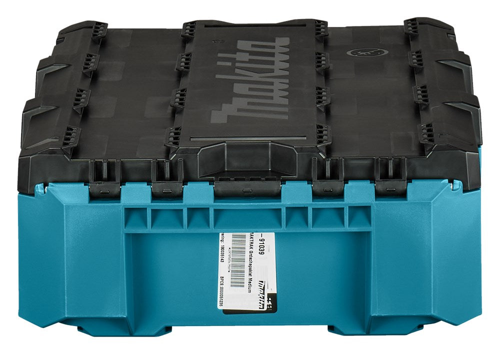Set bevat: 1x Makita P-91039 MAKTRAK Medium 18.4L met inzetbakken, modulair ontwerp en dubbel scharnierend deksel.