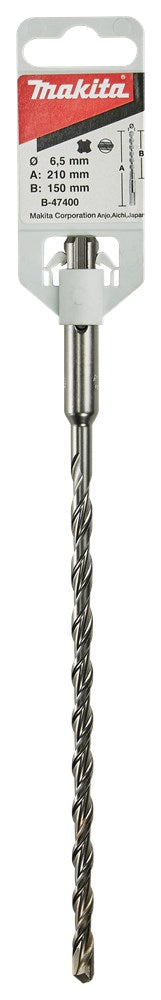 Makita kent een uitgebreide range aan betonboren. Voor elke klus en portemonnee is een betonboor beschikbaar: SP4S: Stofvrij Premium 4-snijder: Hoogste kwaliteit 4-snijder voor stofvrij werken. TNO-certificering met 8-uurs label in combinatie met een B-label stofzuiger. Voor droog metselwerk, beton, gewapend beton en (natuur)steen. P4S: Premium 4-snijder: Hoogste kwaliteit 4-snijder met lange levensduur. Door zijn dynamische boorpunt met unieke snijgeometrie en geoptimaliseerde spiraalvorm mag deze boor zich onder de beste in zijn soort scharen. Geschikt voor (gewapend) beton en (natuur)steen. B4S: Basis 4-snijder is een uitstekende boor die uitblinkt in zijn prijs-kwaliteitsverhouding. P2S: Premium 2-snijder: Hoge kwaliteit 2-snijder met lange levensduur. De dynamisch gevormde boorpunt garandeert een hoge boorsnelheid, de variabele boorspiraal zorgt voor een optimale afvoer van het boorgruis. B2S: Basis 2-snijder is een uitstekende boor die uitblinkt in zijn prijs-kwaliteitsverhouding. Makita 2-snijder betonboor 6,5x210mm; efficiënt boren door de extra asymmetrisch geplaatste boorpunten op het hardmetalen snijvlak. Deze punten zorgen tijdens het boren voor micro scheuren in het beton. Door het ontwerp van de spiraalruggen ontstaat er minder frictie en wordt gruis goed afgevoerd. Uitermate geschikt voor snoerloze boor- en combihamers.