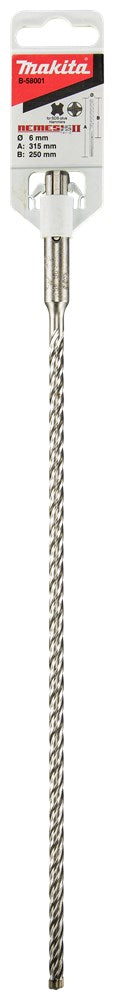 Makita kent een uitgebreide range aan betonboren. Voor elke klus en portemonnee is een betonboor beschikbaar: SP4S: Stofvrij Premium 4-snijder: Hoogste kwaliteit 4-snijder voor stofvrij werken. TNO-certificering met 8-uurs label in combinatie met een B-label stofzuiger. Voor droog metselwerk, beton, gewapend beton en (natuur)steen. P4S: Premium 4-snijder: Hoogste kwaliteit 4-snijder met lange levensduur. Door zijn dynamische boorpunt met unieke snijgeometrie en geoptimaliseerde spiraalvorm mag deze boor zich onder de beste in zijn soort scharen. Geschikt voor (gewapend) beton en (natuur)steen. B4S: Basis 4-snijder is een uitstekende boor die uitblinkt in zijn prijs-kwaliteitsverhouding. P2S: Premium 2-snijder: Hoge kwaliteit 2-snijder met lange levensduur. De dynamisch gevormde boorpunt garandeert een hoge boorsnelheid, de variabele boorspiraal zorgt voor een optimale afvoer van het boorgruis. B2S: Basis 2-snijder is een uitstekende boor die uitblinkt in zijn prijs-kwaliteitsverhouding. Betonboor 6x315mm met SDS-PLUS aansluiting. Viersnijder uit het NemesisII-assortiment, de hoogste kwaliteit Makita betonboren.