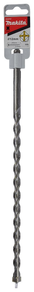 Makita kent een uitgebreide range aan betonboren. Voor elke klus en portemonnee is een betonboor beschikbaar: SP4S: Stofvrij Premium 4-snijder: Hoogste kwaliteit 4-snijder voor stofvrij werken. TNO-certificering met 8-uurs label in combinatie met een B-label stofzuiger. Voor droog metselwerk, beton, gewapend beton en (natuur)steen. P4S: Premium 4-snijder: Hoogste kwaliteit 4-snijder met lange levensduur. Door zijn dynamische boorpunt met unieke snijgeometrie en geoptimaliseerde spiraalvorm mag deze boor zich onder de beste in zijn soort scharen. Geschikt voor (gewapend) beton en (natuur)steen. B4S: Basis 4-snijder is een uitstekende boor die uitblinkt in zijn prijs-kwaliteitsverhouding. P2S: Premium 2-snijder: Hoge kwaliteit 2-snijder met lange levensduur. De dynamisch gevormde boorpunt garandeert een hoge boorsnelheid, de variabele boorspiraal zorgt voor een optimale afvoer van het boorgruis. B2S: Basis 2-snijder is een uitstekende boor die uitblinkt in zijn prijs-kwaliteitsverhouding. Makita SDS-PLUS 4-snijder betonboor, afmeting 12x310mm.