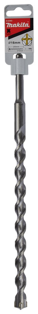 Makita kent een uitgebreide range aan betonboren. Voor elke klus en portemonnee is een betonboor beschikbaar: SP4S: Stofvrij Premium 4-snijder: Hoogste kwaliteit 4-snijder voor stofvrij werken. TNO-certificering met 8-uurs label in combinatie met een B-label stofzuiger. Voor droog metselwerk, beton, gewapend beton en (natuur)steen. P4S: Premium 4-snijder: Hoogste kwaliteit 4-snijder met lange levensduur. Door zijn dynamische boorpunt met unieke snijgeometrie en geoptimaliseerde spiraalvorm mag deze boor zich onder de beste in zijn soort scharen. Geschikt voor (gewapend) beton en (natuur)steen. B4S: Basis 4-snijder is een uitstekende boor die uitblinkt in zijn prijs-kwaliteitsverhouding. P2S: Premium 2-snijder: Hoge kwaliteit 2-snijder met lange levensduur. De dynamisch gevormde boorpunt garandeert een hoge boorsnelheid, de variabele boorspiraal zorgt voor een optimale afvoer van het boorgruis. B2S: Basis 2-snijder is een uitstekende boor die uitblinkt in zijn prijs-kwaliteitsverhouding. Makita SDS-PLUS 4-snijder betonboor, afmeting 16x310mm.