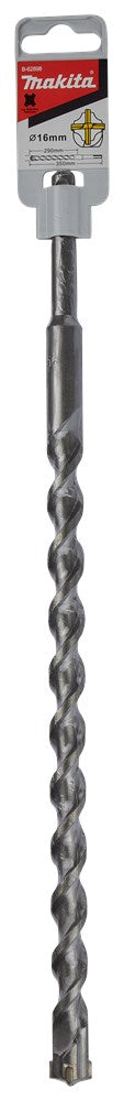 Makita kent een uitgebreide range aan betonboren. Voor elke klus en portemonnee is een betonboor beschikbaar: SP4S: Stofvrij Premium 4-snijder: Hoogste kwaliteit 4-snijder voor stofvrij werken. TNO-certificering met 8-uurs label in combinatie met een B-label stofzuiger. Voor droog metselwerk, beton, gewapend beton en (natuur)steen. P4S: Premium 4-snijder: Hoogste kwaliteit 4-snijder met lange levensduur. Door zijn dynamische boorpunt met unieke snijgeometrie en geoptimaliseerde spiraalvorm mag deze boor zich onder de beste in zijn soort scharen. Geschikt voor (gewapend) beton en (natuur)steen. B4S: Basis 4-snijder is een uitstekende boor die uitblinkt in zijn prijs-kwaliteitsverhouding. P2S: Premium 2-snijder: Hoge kwaliteit 2-snijder met lange levensduur. De dynamisch gevormde boorpunt garandeert een hoge boorsnelheid, de variabele boorspiraal zorgt voor een optimale afvoer van het boorgruis. B2S: Basis 2-snijder is een uitstekende boor die uitblinkt in zijn prijs-kwaliteitsverhouding. Makita SDS-PLUS 4-snijder betonboor, afmeting 16x350mm.