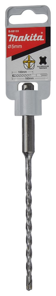 Makita kent een uitgebreide range aan betonboren. Voor elke klus en portemonnee is een betonboor beschikbaar: SP4S: Stofvrij Premium 4-snijder: Hoogste kwaliteit 4-snijder voor stofvrij werken. TNO-certificering met 8-uurs label in combinatie met een B-label stofzuiger. Voor droog metselwerk, beton, gewapend beton en (natuur)steen. P4S: Premium 4-snijder: Hoogste kwaliteit 4-snijder met lange levensduur. Door zijn dynamische boorpunt met unieke snijgeometrie en geoptimaliseerde spiraalvorm mag deze boor zich onder de beste in zijn soort scharen. Geschikt voor (gewapend) beton en (natuur)steen. B4S: Basis 4-snijder is een uitstekende boor die uitblinkt in zijn prijs-kwaliteitsverhouding. P2S: Premium 2-snijder: Hoge kwaliteit 2-snijder met lange levensduur. De dynamisch gevormde boorpunt garandeert een hoge boorsnelheid, de variabele boorspiraal zorgt voor een optimale afvoer van het boorgruis. B2S: Basis 2-snijder is een uitstekende boor die uitblinkt in zijn prijs-kwaliteitsverhouding. Makita SDS-PLUS 4-snijder betonboor, afmeting 5x160mm.