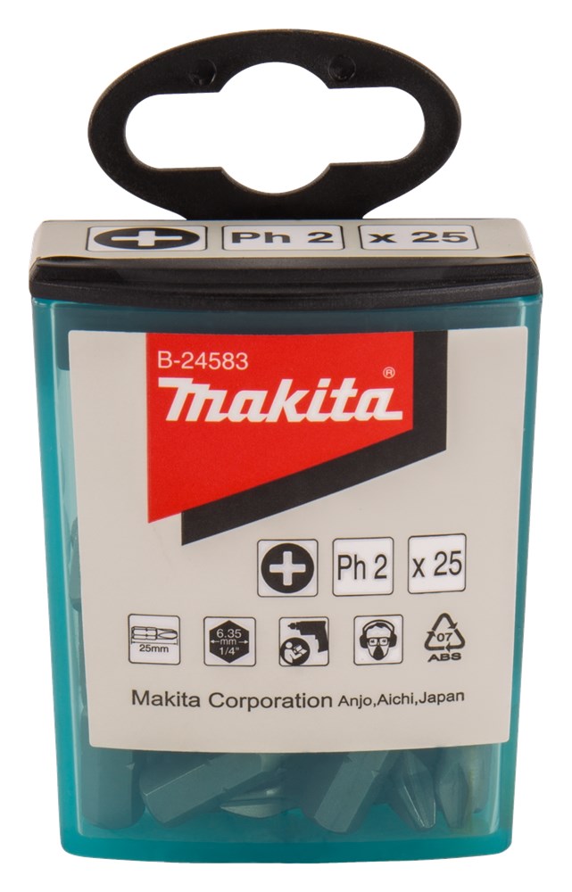 Makita schroefbits en slagschroefbits in verschillende lengtes en paskoppen. Voor elke klus is er een geschikte schroefbit beschikbaar. Kwalitatieve schroefbits in opbouw van Standaard, Impact Black, Impact Silver en Impact Gold naar Impact Premier. Standaard schroefbit PH2 lengte 25mm. 25 stuks in handige meeneemverpakking.