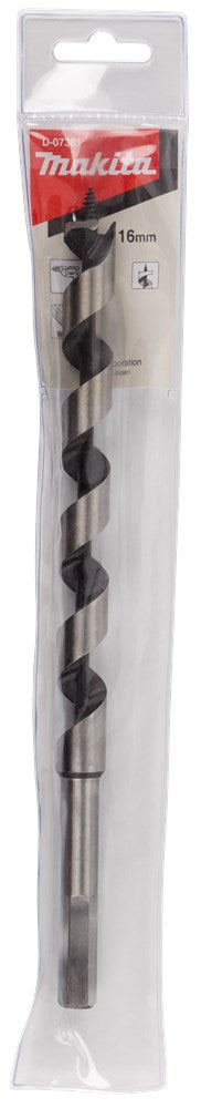 Makita slangenboor 16x250mm met zelfaantrekkende schroefdraadpunt/voorsnijder. De grote spiraal zorgt voor een moeiteloze spaanafvoer zowel bij droog- als nathout. Deze boren hebben een zeskantaansluiting ter voorkoming van slippen in de boorkop. Geschikt voor het boren in balken en verbindingen. Gebruik altijd een laag toerental bij het boren met een slangenboor.