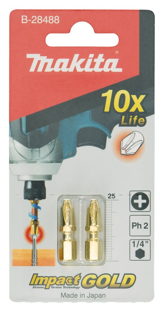 Makita schroefbits en slagschroefbits in verschillende lengtes en paskoppen. Voor elke klus is er een geschikte schroefbit beschikbaar. Kwalitatieve schroefbits in opbouw van Standaard, Impact Black, Impact Silver en Impact Gold naar Impact Premier. Schroefbit speciaal ontwikkeld voor extra grip bij houtbewerking.