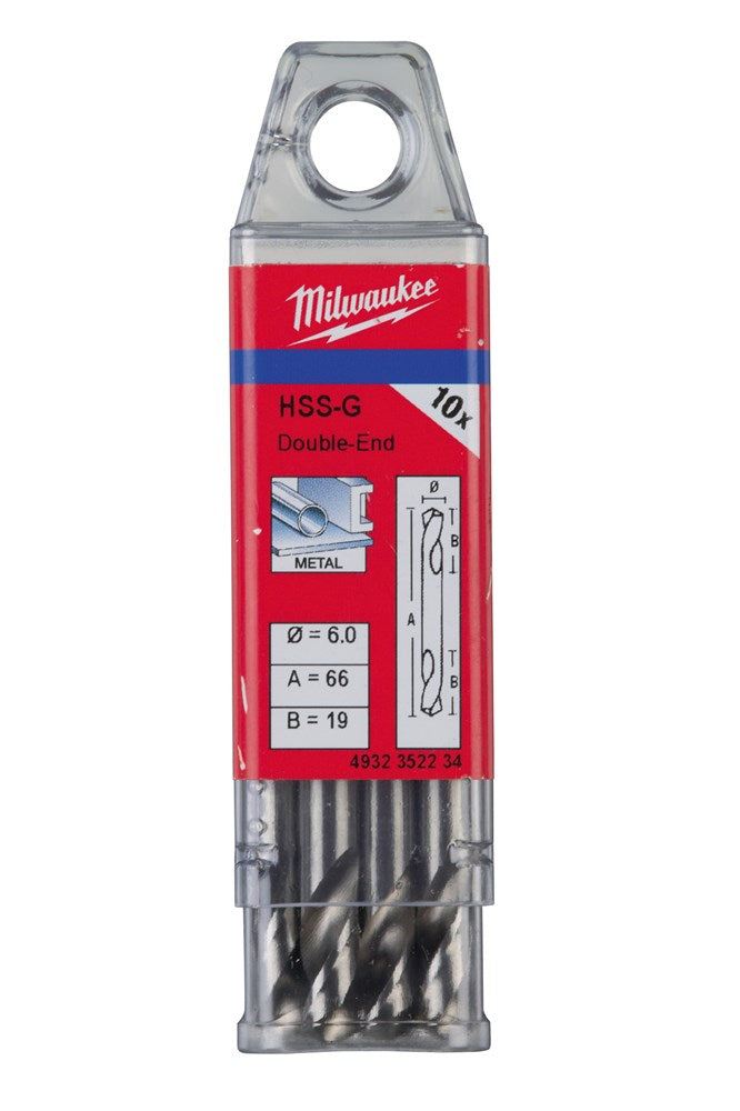 Milwaukee Metaalboor HSS-G Tweezijdig 6 X 66mm 10 stuks – 4932352234