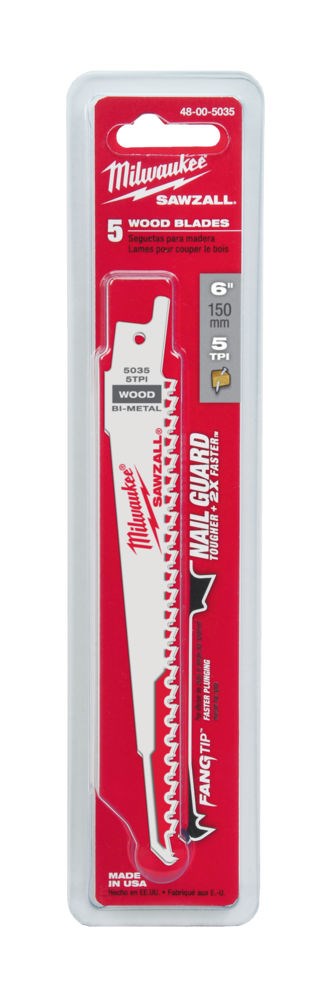 Milwaukee Reciprozaagblad Sawzall Hout THIN KERF 150mm 5-TPI 5 stuks – 48005035