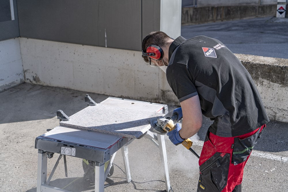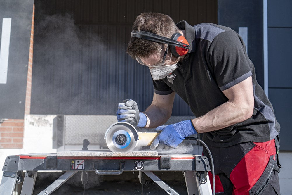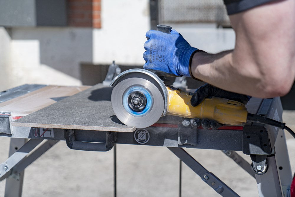 De TGS van RUBI is een diamantzaagblad voor het droog zagen in zowel verstek als rechte sneden van alle soorten materialen met een hoge hardheid, zoals onder andere graniet, leisteen, porcellanato, natuursteen of vuurvaste materialen met een dikte van maximaal 20mm. Het TGS diamantzaagblad is een SUPERPRO kwaliteitsschijf geschikt voor gebruik op haakse slijpers*.Het specifieke ontwerp van de diamantrand van het TGS diamantzaagblad biedt een hogere zaagsnelheid op hardere materialen zonder afbreuk te doen aan de kwaliteit van de afwerking.Dit specifieke diamantzaagblad combineert al het goede van een TURBO-schijf met de voordelen van een speciaal ontworpen diamantrand om de zaagspanningen te verminderen en de kwaliteit van de afwerking te verbeteren. De speciale legering van de diamantrand van het TGS-zaagblad maakt rechte zaagsneden en vooral zaagsneden in verstek mogelijk. Rekening houdend met de bijzonderheden van elk type zaagblad (continue, turbo, enz.) en de materialen waarvoor deze zijn ontworpen, biedt RUBI de professional drie kwaliteiten zaagbladen: PRO, SUPERPRO en PREMIUM. De PRO-bladen bieden de professionele gebruiker de beste prijs-prestatieverhouding.SUPERPRO bladen benadrukken het belangrijkste kenmerk van elk zaagblad. Ze zijn een goede keuze voor de meeste werkzaamheden.PREMIUM-zaagbladen zijn de meest gespecialiseerde optie. Altijd met de beste resultaten.RUBI beveelt het gebruik aan van aangepaste kleding, veiligheidsschoenen, veiligheidsbril, gehoorbescherming, hoofdbescherming, stofmasker of een soort ademhalingsapparaat. Strikte aandacht voor de instructies voor veilig gebruik van de apparatuur is vereist bij het zagen met diamantzaagbladen voor de bescherming van de bediener van het apparaat en anderen in de omgeving van het zaaggebied. Bij het zagen met diamantzaagbladen moeten de instructies voor een veilig gebruik van de apparatuur strikt worden opgevolgd ter bescherming van de gebruiker en anderen in de omgeving van het zaaggebied.*Het is niet aanbevolen om het TGS blad te gebruiken op cirkelzagen (bijv. TC-125).
