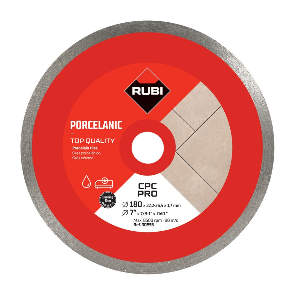Momenteel is een van de grootste problemen voor de tegelzetter het zagen van porseleinen tegels.Bij RUBI weten we hoe mensen werken in alle landen van de wereld. We weten wat de tegelzetter vraagt van zijn gereedschap voor het plaatsen en repareren van tegels. Om deze redenen RUBI is een erkend merk en duidelijk is gericht op de professionele en veeleisende markt.De hoge eisen van onze klanten en de markt hebben geleid tot onze expertise in het ontwerpen van gereedschappen en producten om tegels zo nauwkeurig mogelijk te snijden en te plaatsen.Het resultaat hiervan is het CPC diamantzaagblad.Het CPC zaagblad van RUBI is ideaal voor het recht zagen en verstek zagen van porseleinen tegels, met name voor tegels die extreem hard zijn tot een dikte van 25 mm.De RUBI CPC zaagblad combineert verschillende metalen in de diamantrand samen met een van zeer hoge en fijne kwaliteit diamant. Dit zorgt ervoor dat wij een zaagblad, voor nat gebruik, kunnen aanbieden met tevreden klanten over de hele wereldBinnen deze serie zaagbladen heeft RUBI 2 verschillende kwaliteit bladen: PRO en SUPERPRO.De PRO zaagbladen geeft de gebruiker de beste prijs-kwaliteitverhouding.SUPERPRO bladen zijn als er meer wordt geëist van de zaagbladen in verband met een zwaardere klus.Bladen met een dikte van minder dan 2 mm zijn niet geschikt voor verstek zagen.