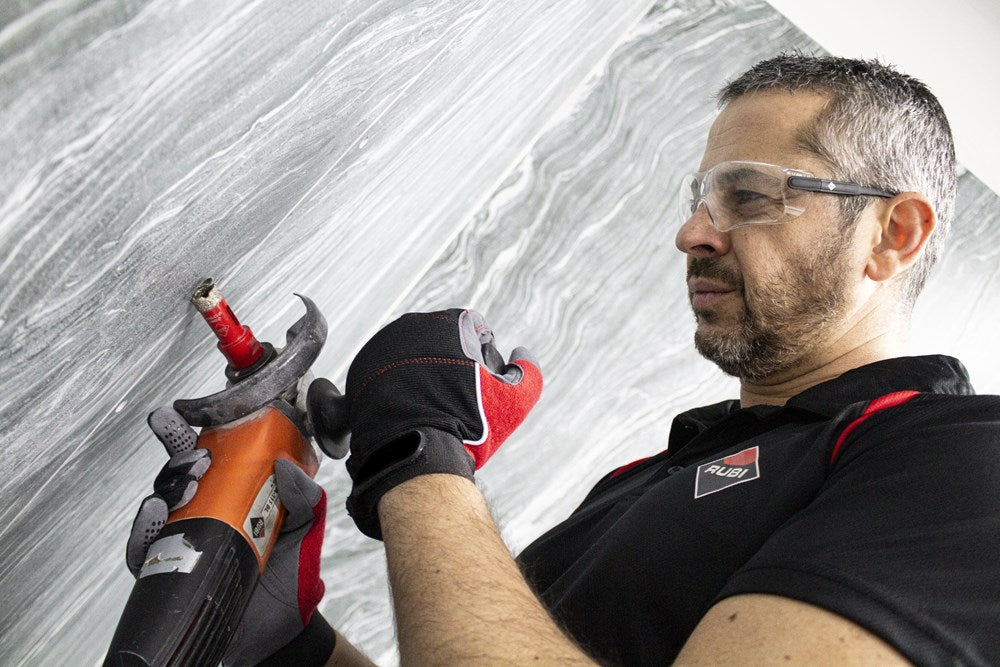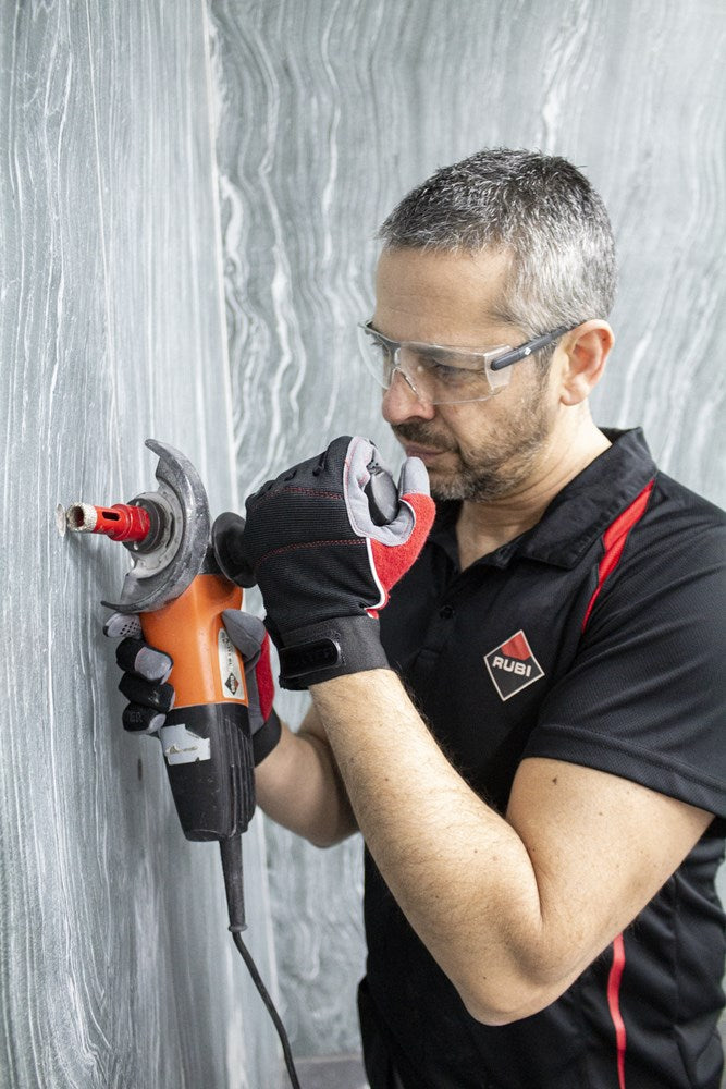 De DRYGRES serie van de diamantboren zijn aanbevolen voor het boren van alle soorten tegels en andere wand of vloermaterialen zoals marmer en graniet.In de DRYGRES serie van de diamantboren heeft RUBI vacuüm gesoldeerde technologie gebruikt, die de weerstand tegen temperatuur en wrijving verhoogt, om zo de levensduur van de diamantboor te verhogen.DRYGRES boren in de diameters 6-12 mm zijn perfect voor het installeren van badkameraccessoires. Andere diameters in de DRYGRES diamant serie 20-75 mm zijn bedoeld om de beste resultaten te krijgen bij het uitvoeren van de noodzakelijke boren voor waterleidingen, waterafvoer, elektrische aansluitingen, enz.DRYGRES diamantboren zijn gemaakt om droog mee te boren en kan worden gebruikt via M14 draadverbinding op een slijpmachine of door middel van een booradapter (ref. 05.976) op een boormachine.De gemiddelde levensduur van de DRYGRES boren is afhankelijk van de diameter. In diameters van 6-12 mm is de gemiddelde levensverwachting is 25 gaten en de DRYGRES 20-75 mm heeft een gemiddelde levensduur is 60 gaten.De gemiddelde levensduur van de boren is altijd afhankelijk van het soort materiaal, de dikte, een goede koeling en de toepassing.De boordiepte van DRYGRES boren is 36 mm.De diameters van 6, 8, 10 en 12 mm van de DRYGRES boren bevatten was binnen. Dit was smelt tijdens het boren en dit bevorderd de koeling en de afvoer van boorresten bij de boorkop. Als de was op is dan kan de boor gewoon gebruikt worden. Alleen slijtage aan het diamant op de boorkop kan bepalen wanneer de boor versleten is.De DRYGRES boren (diameter 20-75 mm) hebben een zijopening die de koeling van de boor verbetert en dit zorgt er ook voor dat de resten na het boren makkelijker verwijderd kunnen worden uit de boor. Voordat de boor nogmaals gebruikt gaat worden moeten alle resten uit de boorkop verwijderd zijn.De maximumsnelheid voor het gebruik van DRYGRES diamantboren is 14.000 rpmVoor een betere afwerking en langere duur van de boor, is het belangrijk om de geadviseerde rotatiesnelheid aan te houden en om met de boor een draaiende beweging te maken tijdens het boren.
