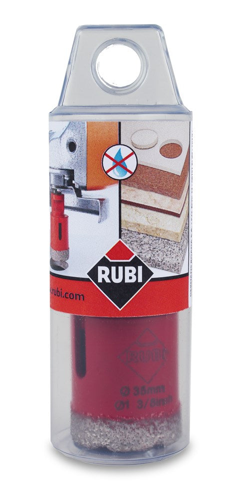 De DRYGRES serie van de diamantboren zijn aanbevolen voor het boren van alle soorten tegels en andere wand of vloermaterialen zoals marmer en graniet.In de DRYGRES serie van de diamantboren heeft RUBI vacuüm gesoldeerde technologie gebruikt, die de weerstand tegen temperatuur en wrijving verhoogt, om zo de levensduur van de diamantboor te verhogen.DRYGRES boren in de diameters 6-12 mm zijn perfect voor het installeren van badkameraccessoires. Andere diameters in de DRYGRES diamant serie 20-75 mm zijn bedoeld om de beste resultaten te krijgen bij het uitvoeren van de noodzakelijke boren voor waterleidingen, waterafvoer, elektrische aansluitingen, enz.DRYGRES diamantboren zijn gemaakt om droog mee te boren en kan worden gebruikt via M14 draadverbinding op een slijpmachine of door middel van een booradapter (ref. 05.976) op een boormachine.De gemiddelde levensduur van de DRYGRES boren is afhankelijk van de diameter. In diameters van 6-12 mm is de gemiddelde levensverwachting is 25 gaten en de DRYGRES 20-75 mm heeft een gemiddelde levensduur is 60 gaten.De gemiddelde levensduur van de boren is altijd afhankelijk van het soort materiaal, de dikte, een goede koeling en de toepassing.De boordiepte van DRYGRES boren is 36 mm.De diameters van 6, 8, 10 en 12 mm van de DRYGRES boren bevatten was binnen. Dit was smelt tijdens het boren en dit bevorderd de koeling en de afvoer van boorresten bij de boorkop. Als de was op is dan kan de boor gewoon gebruikt worden. Alleen slijtage aan het diamant op de boorkop kan bepalen wanneer de boor versleten is.De DRYGRES boren (diameter 20-75 mm) hebben een zijopening die de koeling van de boor verbetert en dit zorgt er ook voor dat de resten na het boren makkelijker verwijderd kunnen worden uit de boor. Voordat de boor nogmaals gebruikt gaat worden moeten alle resten uit de boorkop verwijderd zijn.De maximumsnelheid voor het gebruik van DRYGRES diamantboren is 14.000 rpmVoor een betere afwerking en langere duur van de boor, is het belangrijk om de geadviseerde rotatiesnelheid aan te houden en om met de boor een draaiende beweging te maken tijdens het boren.