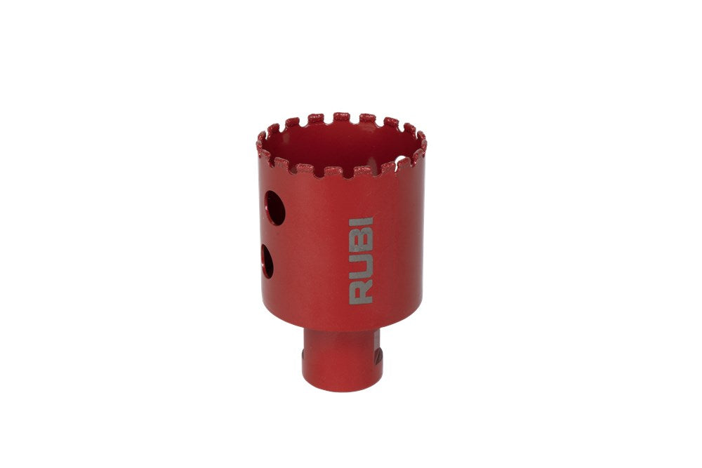 De DRYGRES PREMIUM reeks diamantboren is perfect voor het boren van alle soorten tegels, vooral porcellanato, en andere steenachtige soorten zoals marmer en graniet.RUBI heeft de VACUUM BRAZED-technologie van vacuüm solderen gebruikt in de DRYGRES PREMIUM reeksboren, die hogere temperaturen door wrijving te weerstaan. Hierdoor ontstaat een hogere standtijd van de diamantboren.DRYGRES PREMIUM diamantboren, met diameters Ø 6 tot 12 mm, zijn perfect voor het bevestigen van badkameraccessoires of elk type decoratie-accessoire op betegelde oppervlakken. De overige diameters van het DRYGRES PREMIUM diamantborenassortiment, van Ø 20 tot 85 mm, zijn vooral ontworpen om de tegelzetter de beste resultaten te bieden bij het boren van stopcontacten, buizen, afvoeren, verlichting, enz.DRYGRES PREMIUM diamantboren zijn droog geslepen en kunnen dankzij hun M14 schroefdraadaansluiting rechtstreeks op een haakse slijper of via een adapter (ref. 05976) op een boormachine – zonder klopfunctie – gebruikt worden.De gemiddelde levensduur van de DRYGRES PREMIUM diamantboren varieert naargelang de diameter: die van Ø 6 tot 12 mm hebben een gemiddelde levensduur van 60 gaten en voor de boren van Ø 20 tot 85 mm is dat 150 gaten.De gemiddelde levensduur van de boren hangt ALTIJD af van het soort materiaal, de dikte en de juiste koeling en gebruik.De boordiepte van de DRYGRES PREMIUM diamantboren bedraagt 30 mm voor boren van Ø 6 tot 35 mm en 38 mm voor boren van Ø 43 tot 85 mm.In de diameters Ø 6, 8, 10 en 12 mm bevatten de PREMIUM DRYGRES binnenin wax. Deze wax smelt tijdens het gebruik van de boor en vergemakkelijkt het afkoelen en evacueren van het boorgruis (Als de wax opraakt, kan de boor gewoon verder gebruikt worden. Slechts het totale verlies van de diamant geeft het einde van de levensduur van de boor aan).De DRYGRES PREMIUM diamantboren (diameters Ø 20 tot 85 mm) hebben een zijdelingse opening die de afkoeling van de boor verbetert en het ons gemakkelijker maakt om na elk boorgat de boorkern te verwijderen. Alvorens een nieuw gat te boren, moeten we er zeker van zijn dat de boor schoon is. Boren vanaf Ø 43 mm zijn gesegmenteerd om de stabiliteit tijdens het boren te verbeteren.De maximale gebruikssnelheid voor DRYGRES PREMIUM diamantboren is 14.000 rpm.Voor een betere afwerking en een langere levensduur van de boor is het belangrijk om het juiste toerental te respecteren en een licht pendelende beweging te maken tijdens het boren.